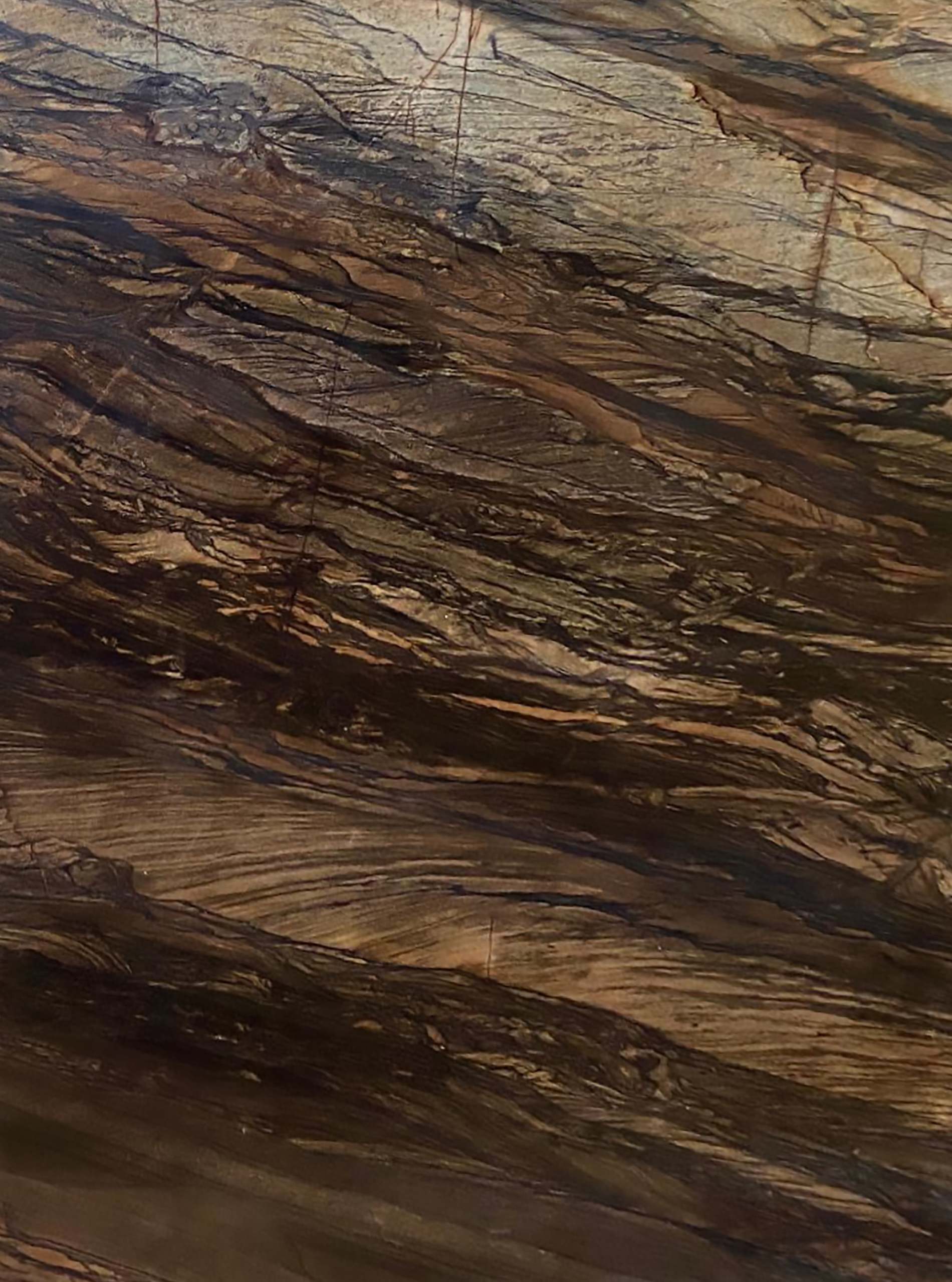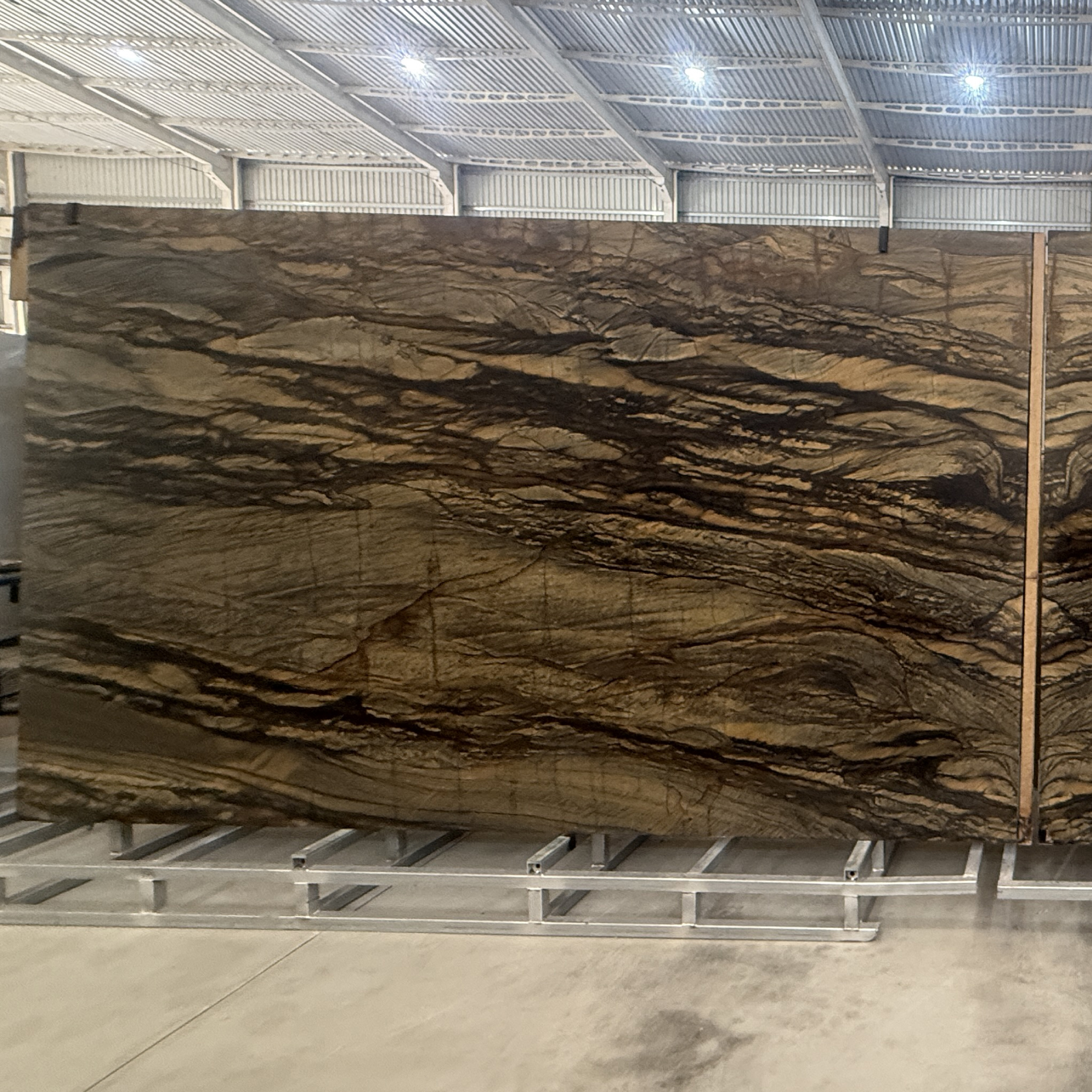 El Granito Sandalus, importado de Brasil, es una piedra natural que combina fuerza y carácter, transmitiendo una sensación de calidez y confort natural en cualquier ambiente. Su acabado cepillado realza la textura y profundidad de sus vetas, creando superficies que invitan al tacto y aportan un aire acogedor. Resistente a rayones y altas temperaturas, es perfecto para mesones de cocina, baños, barras, chimeneas y espacios exteriores, conservando su encanto incluso con un uso intensivo.