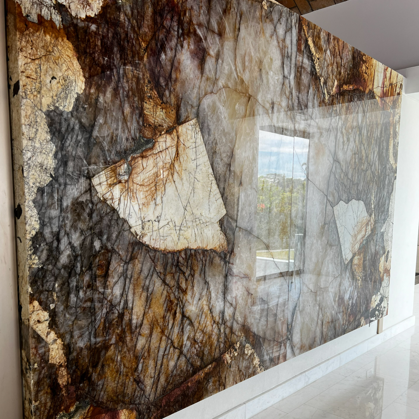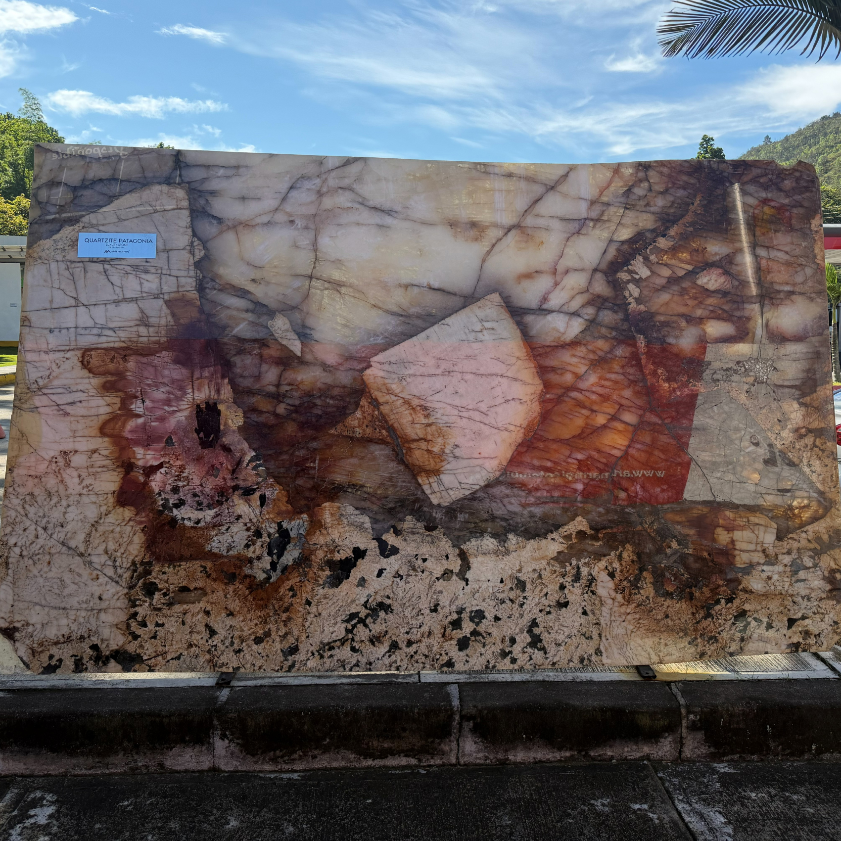 La Quartzite Patagonia, importada de Brasil, es una piedra natural única que combina fuerza y elegancia en un solo material. Sus impresionantes vetas y contrastes de color evocan paisajes naturales, aportando sofisticación y un carácter exclusivo a cada espacio. Más que un recubrimiento, transmite confort visual y una sensación de equilibrio que enriquece el ambiente. Gracias a su resistencia a rayones, impactos y altas temperaturas, es ideal para mesones de cocina, baños, paredes decorativas y superficies expuestas al uso constante.