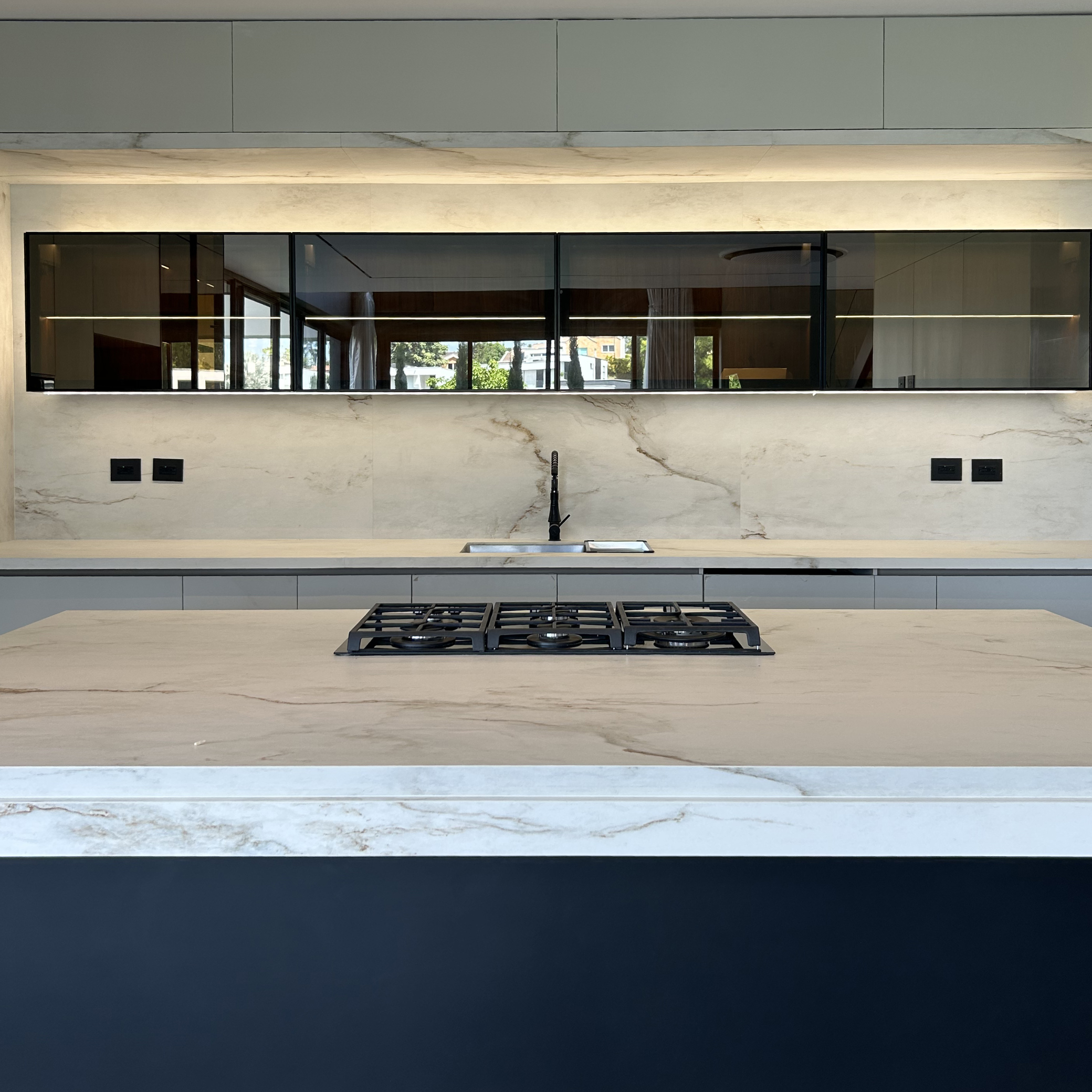 Gracias a su alta resistencia al calor, a las manchas y al uso diario, así como a su gran versatilidad, es una opción ideal para encimeras, revestimientos, baños y muebles, logrando un acabado exclusivo sin sacrificar practicidad. Su estética atemporal se integra con facilidad en estilos contemporáneos, clásicos o de lujo moderno.